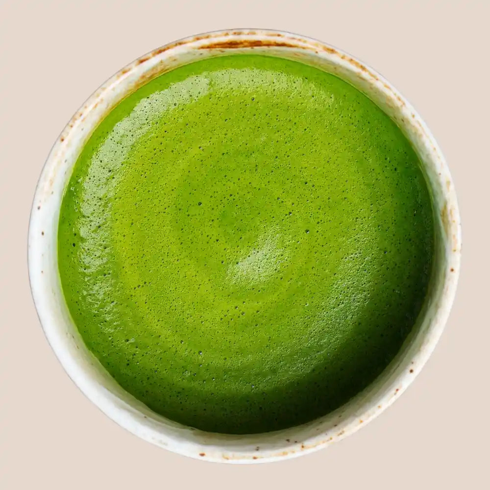 En cambio, un matcha ceremonial de alta calidad ofrece un verde vibrante, sabor dulce, suave y equilibrado, con textura sedosa y espuma cremosa.